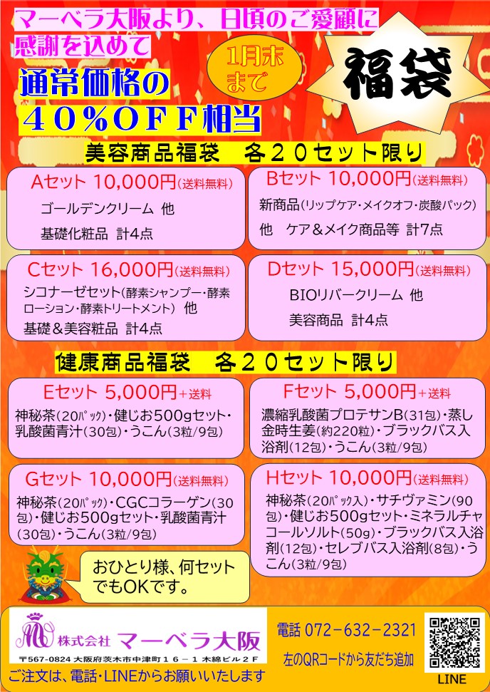 ご好評いただいています「福袋」(1月末まで)