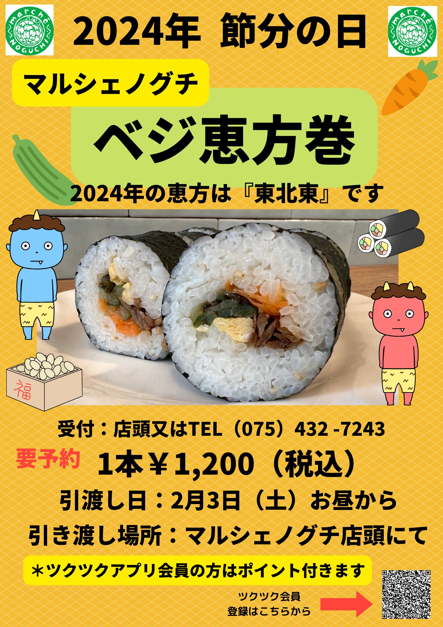 すぐにやってくる節分の日に今年もマルシェノグチで「ベジ恵方巻』を巻きます。