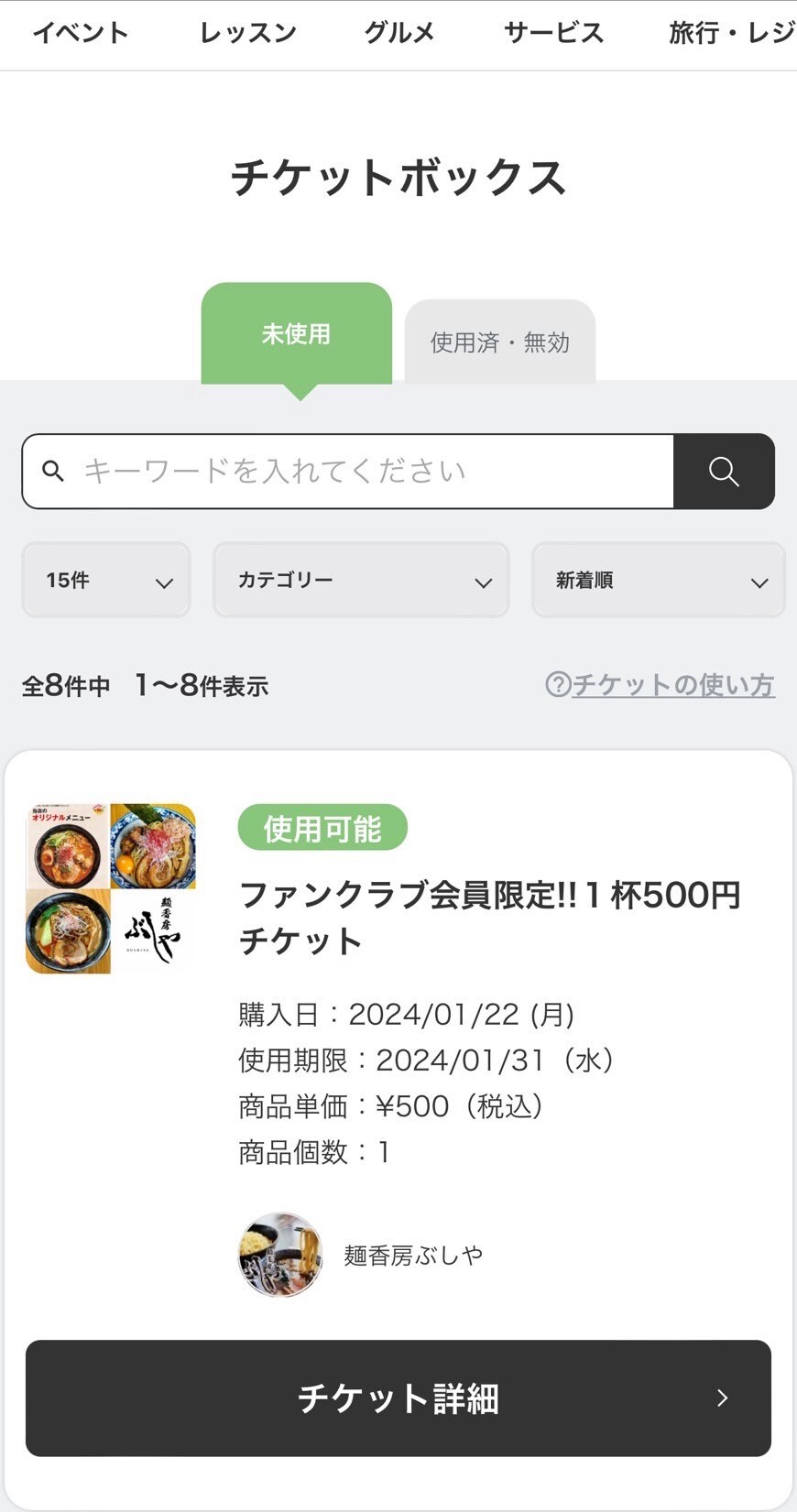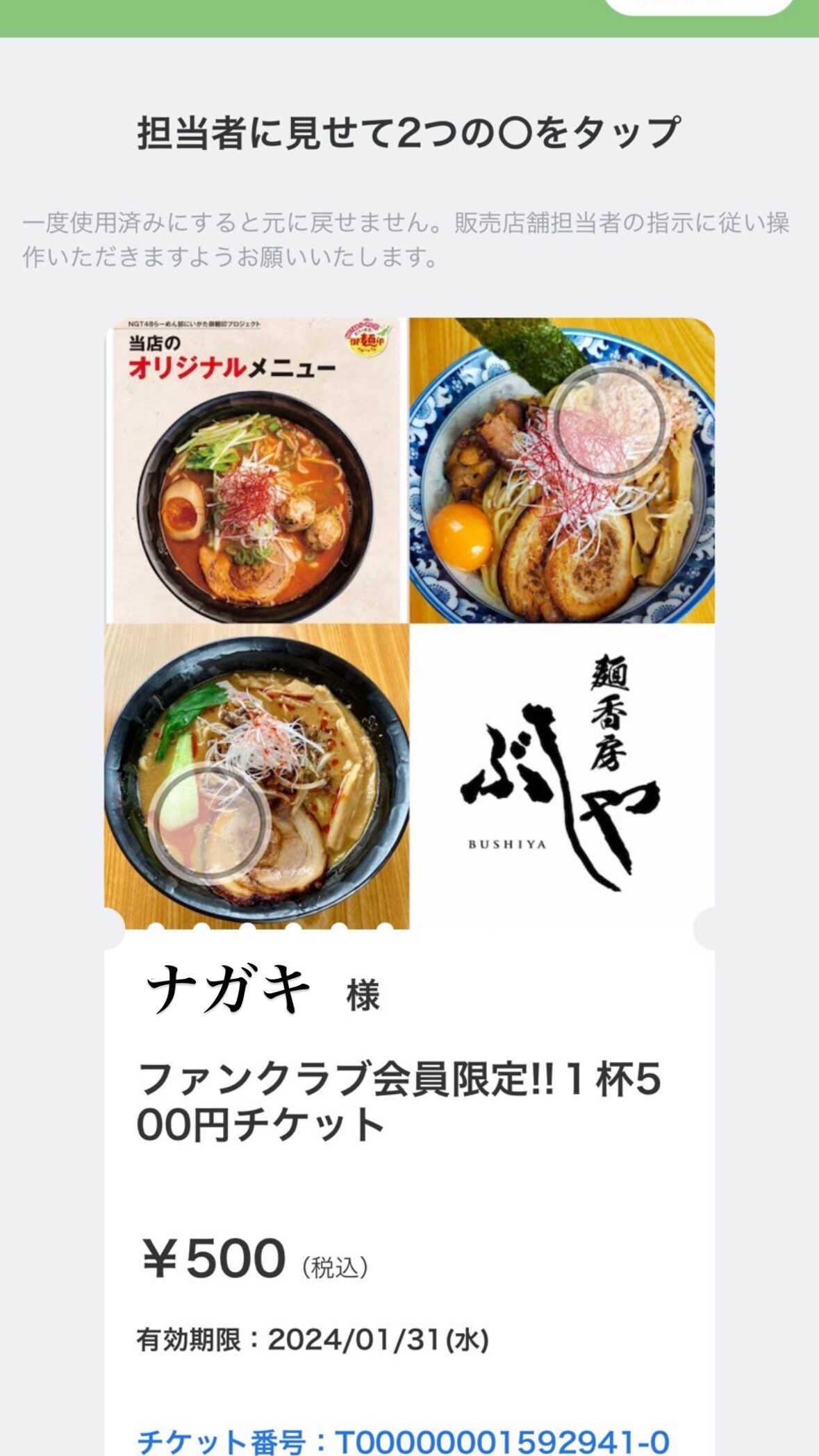 ショップファンクラブ会員の方には大人気の限定麺が50%OFFの¥500で食べられるウェブチケットがご購入できます🤩