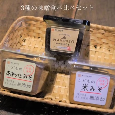 愛知県豊田市の桝塚味噌の商品「豆みそ」、「こどもの米みそ」、「子どもの合わせみそ」を食べ比べできるセットです。