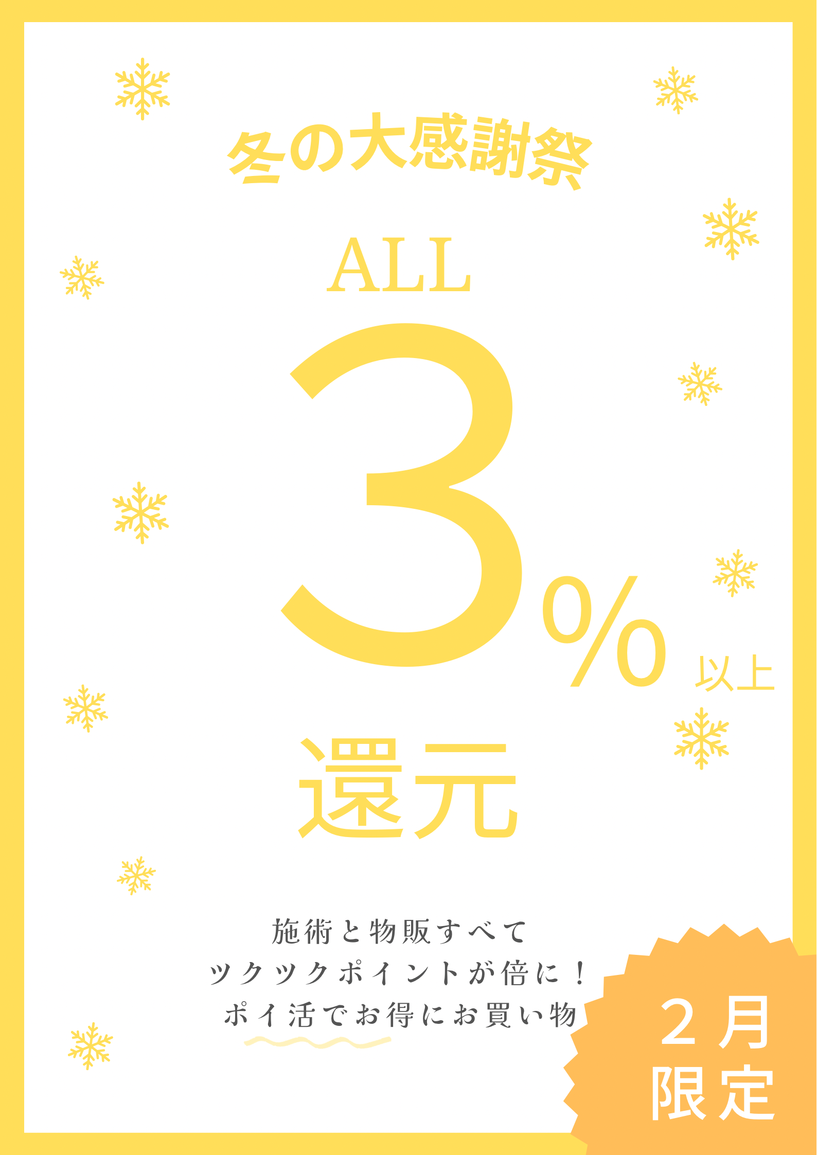 全ての施術、商品が3%以上のポイント還元とさせていただきます。
