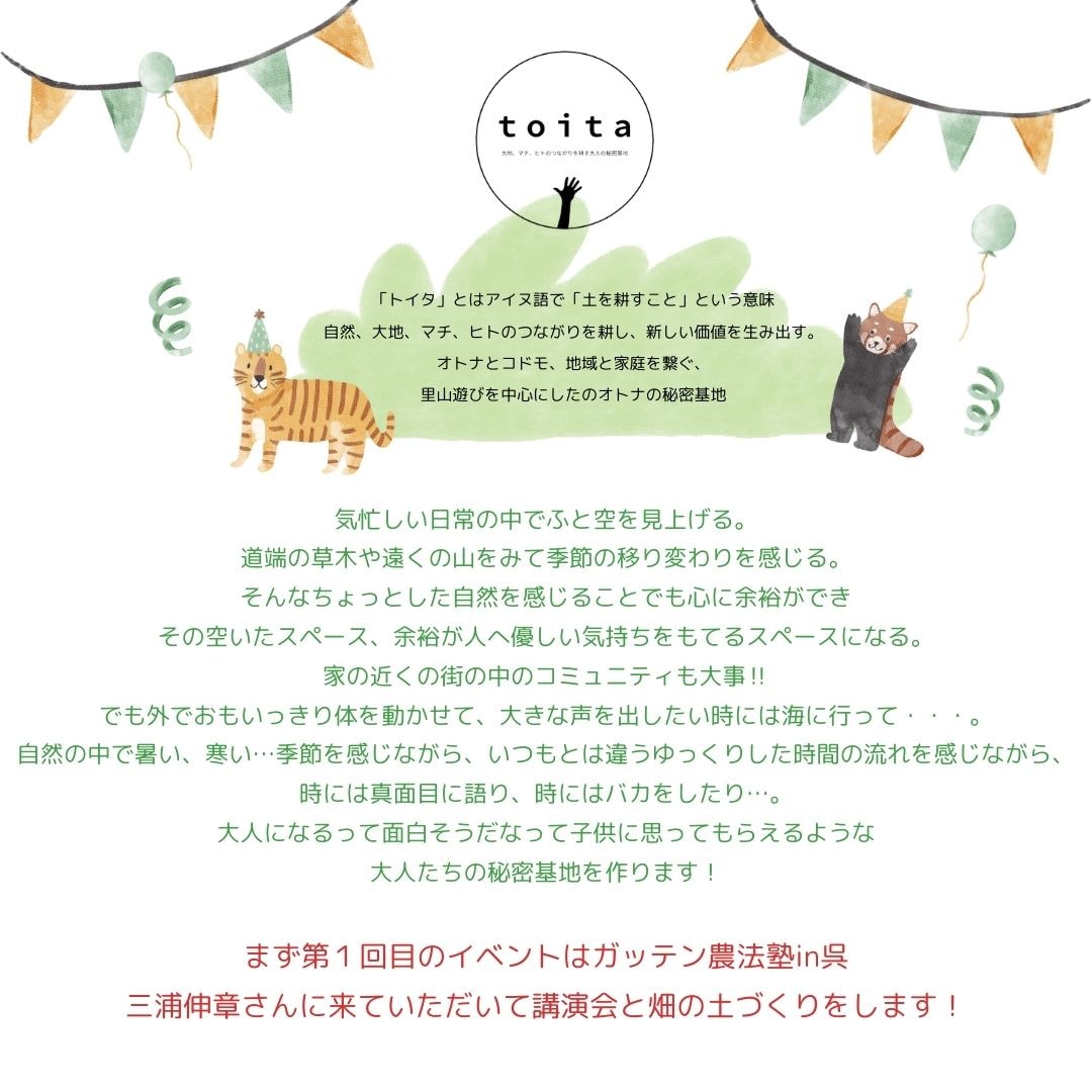 大人の秘密基地&ガッテン農法塾 三浦伸章さん講師 のお知らせ