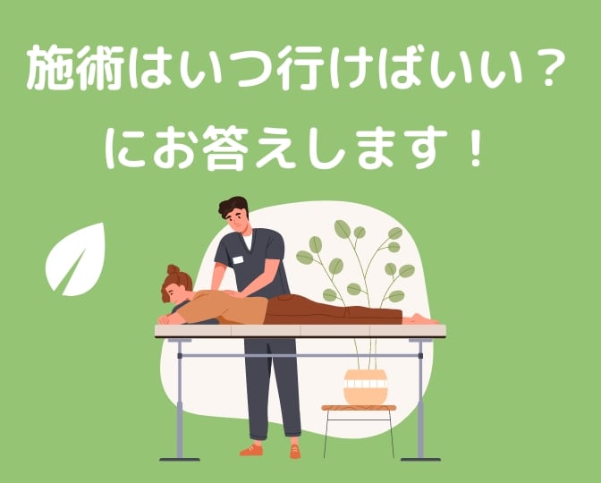 本日のテーマは【施術はいつ行けばいい?にお答えします!】です。