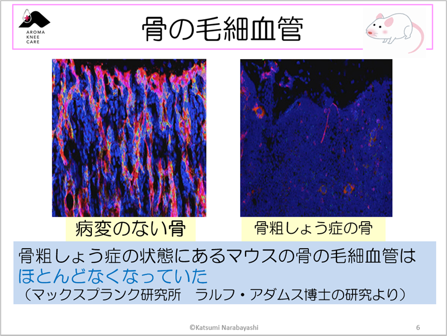 骨粗しょう症でない左の骨には血管があり、