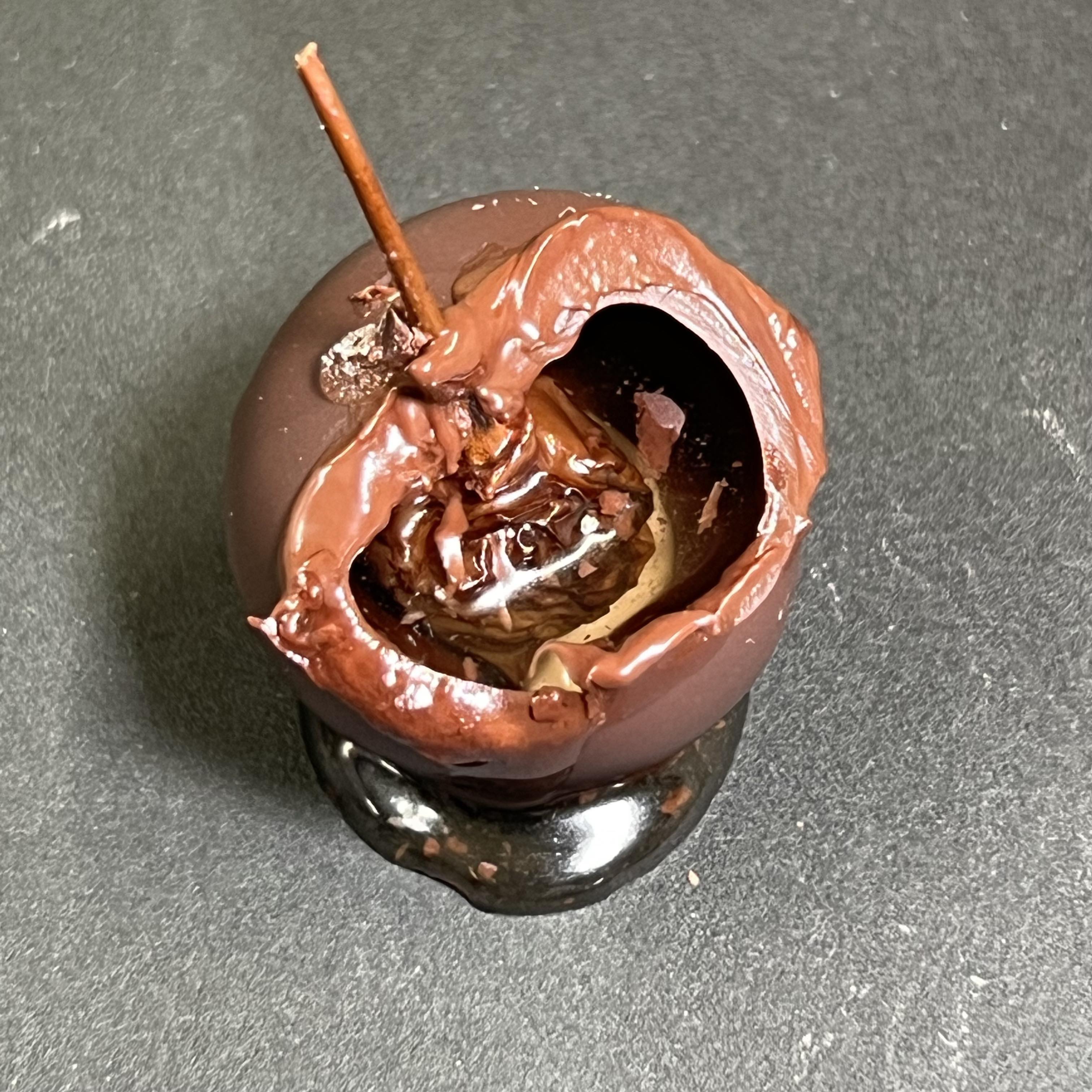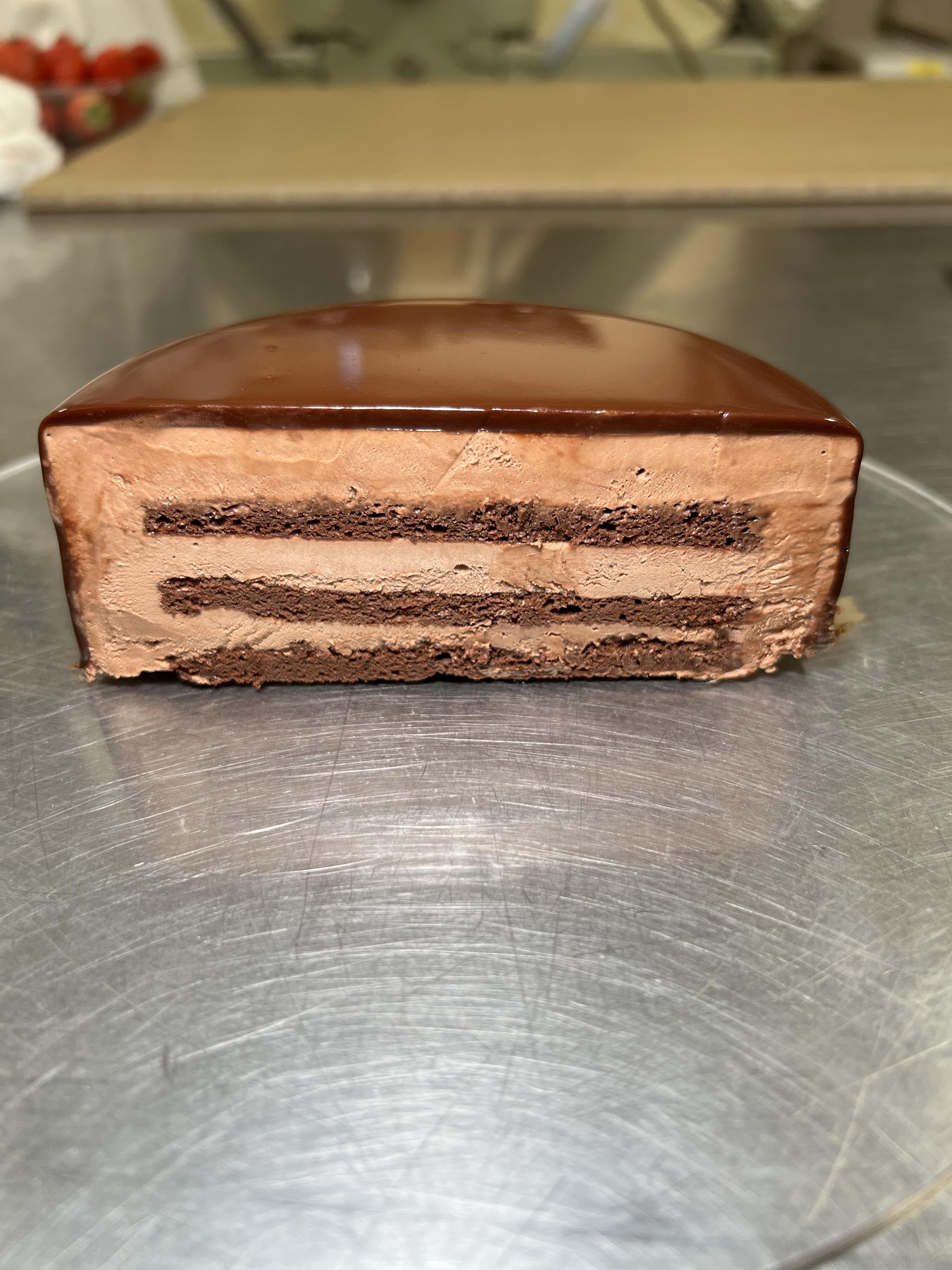 こだわったショコラを使ったムース、程よい酸味が有り甘さ控えめ!中にはあえて他の味を入れず