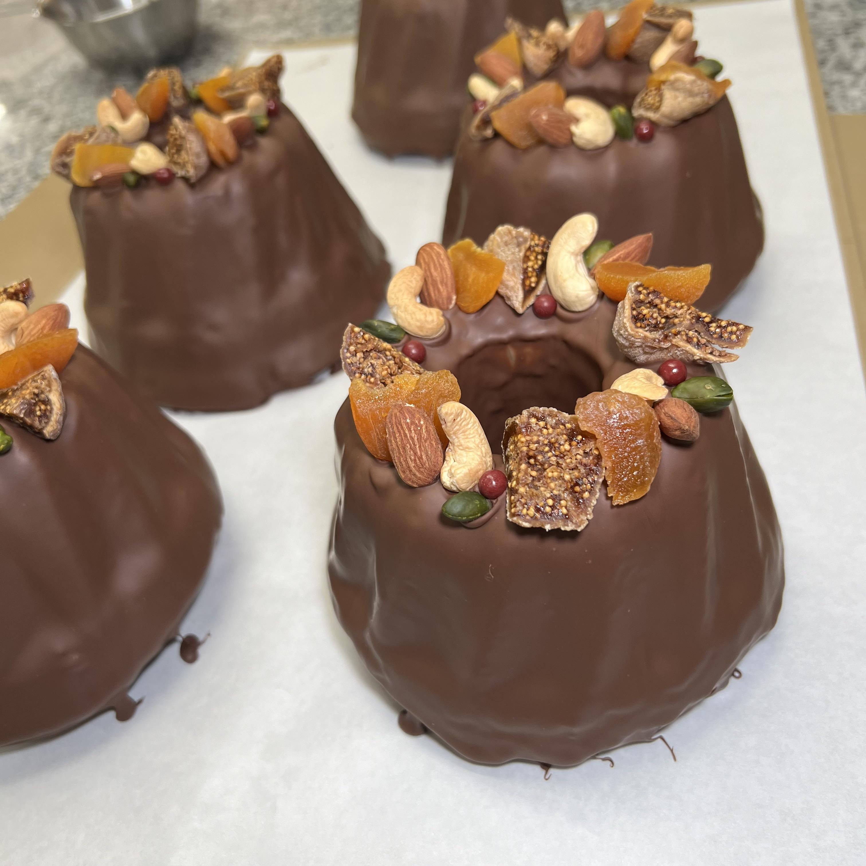 マーブルクグロフ、ナッツを散りばめた板チョコ、恐竜チョコその他色々ございます。