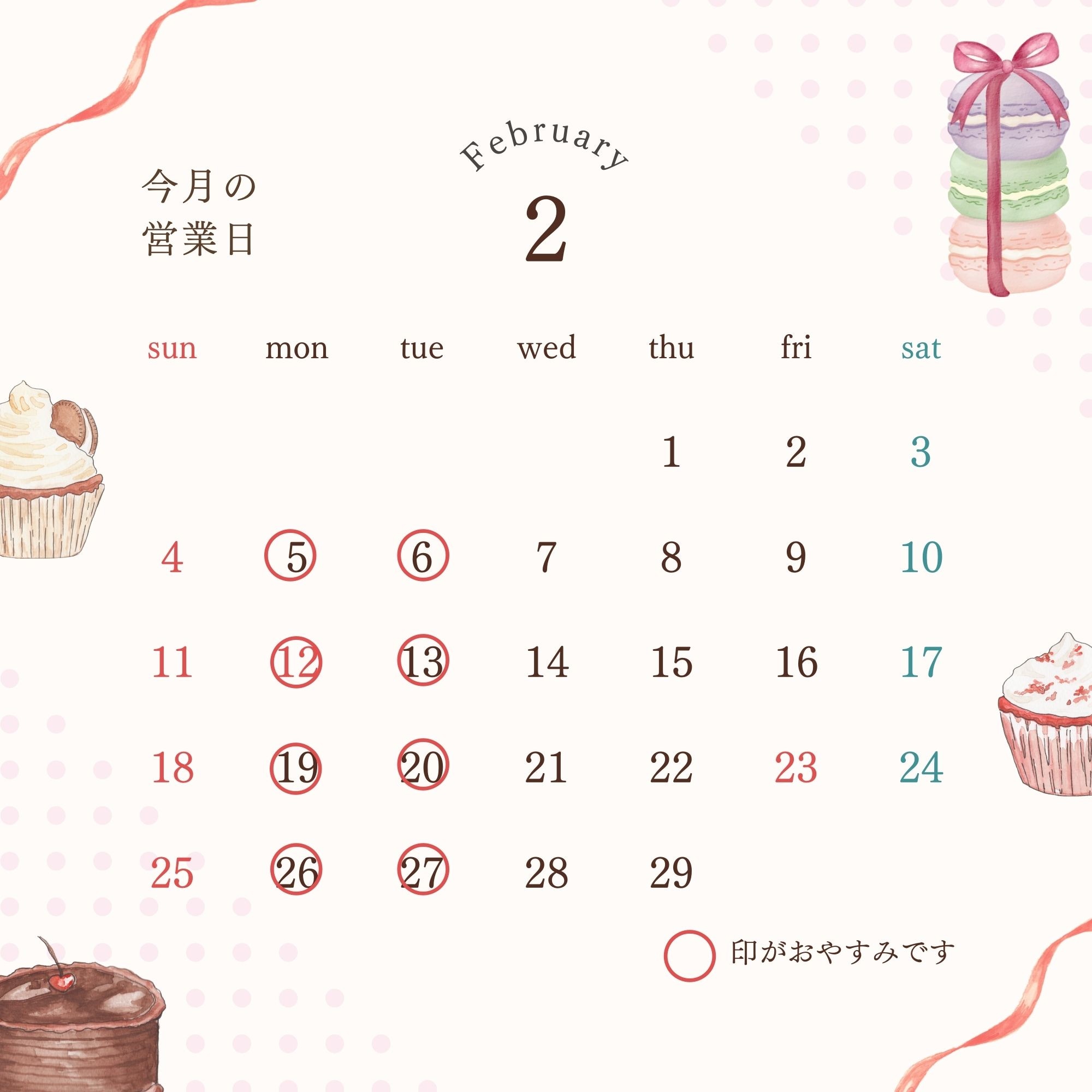 2月の定休日
