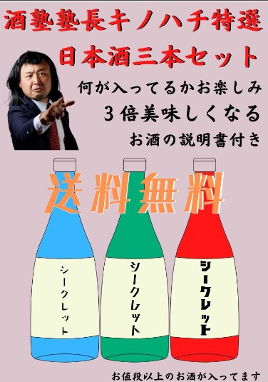 酒塾塾長が厳選した日本酒を三本。晩酌をさらに美味しくするために厳選します。
