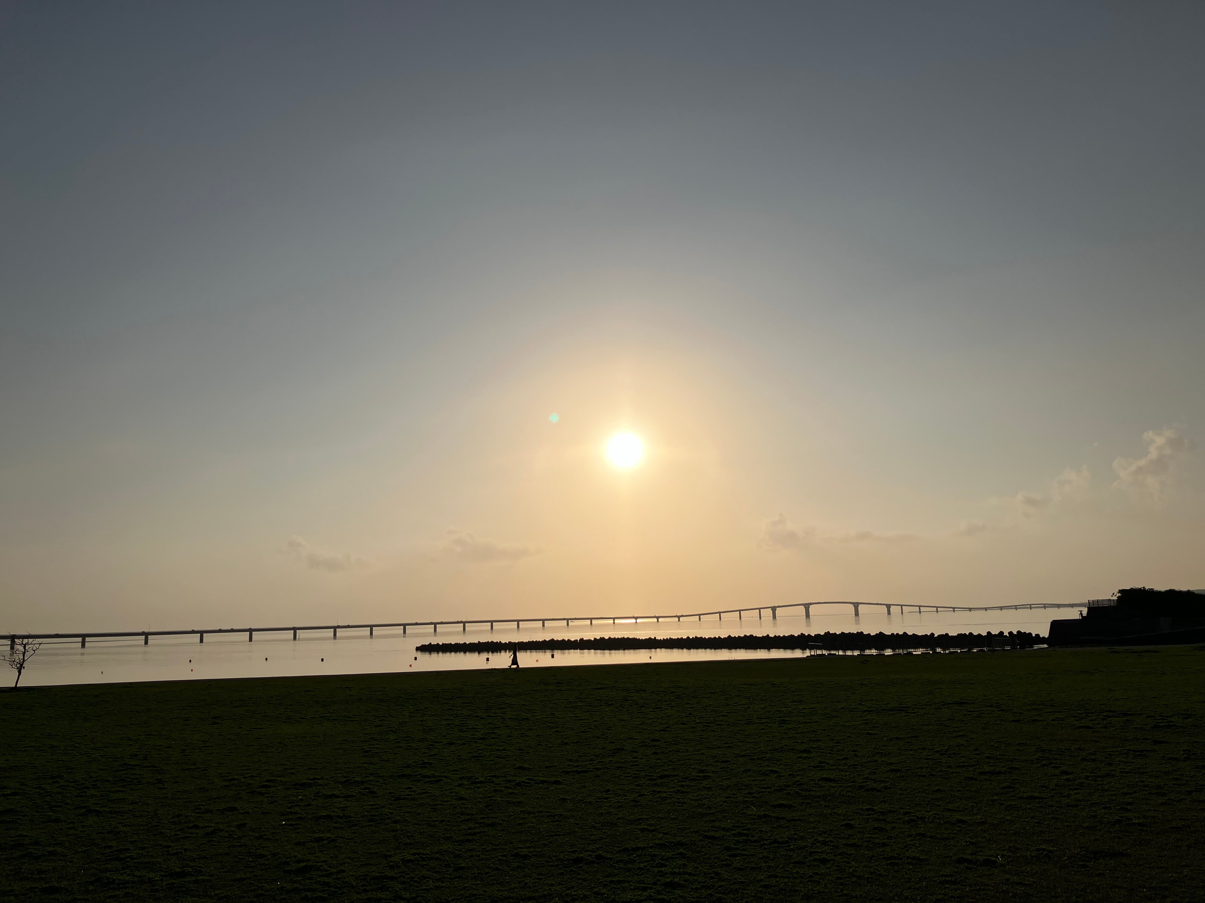 傾きかけた太陽と伊良部大橋。