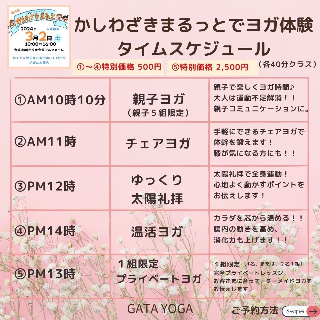 10:10~10:50 親子ヨガ/500円