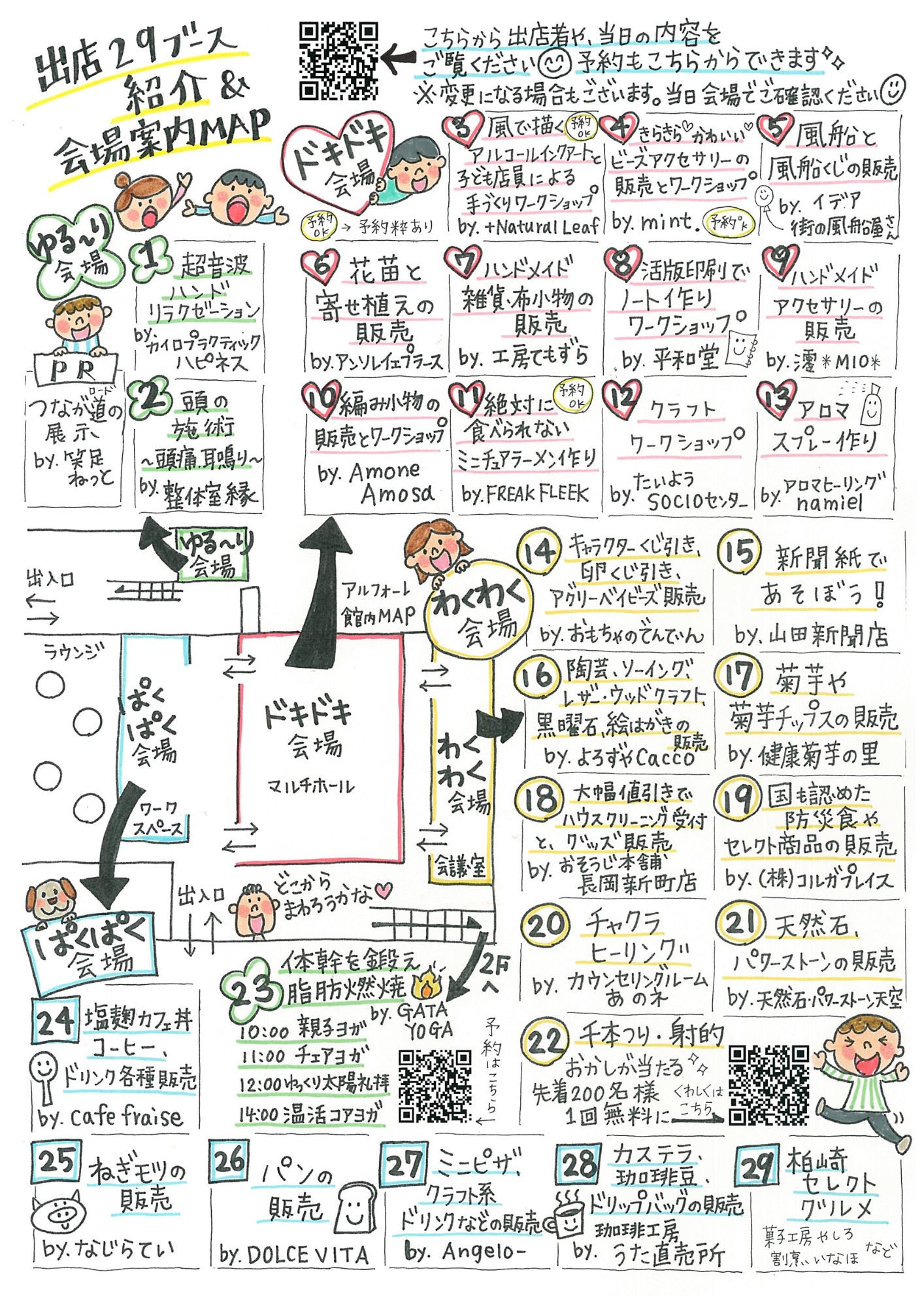 ①カイロプラクティック ハピネス ②整体室 縁 の2ブースは、ドキドキ会場へ変更になります。