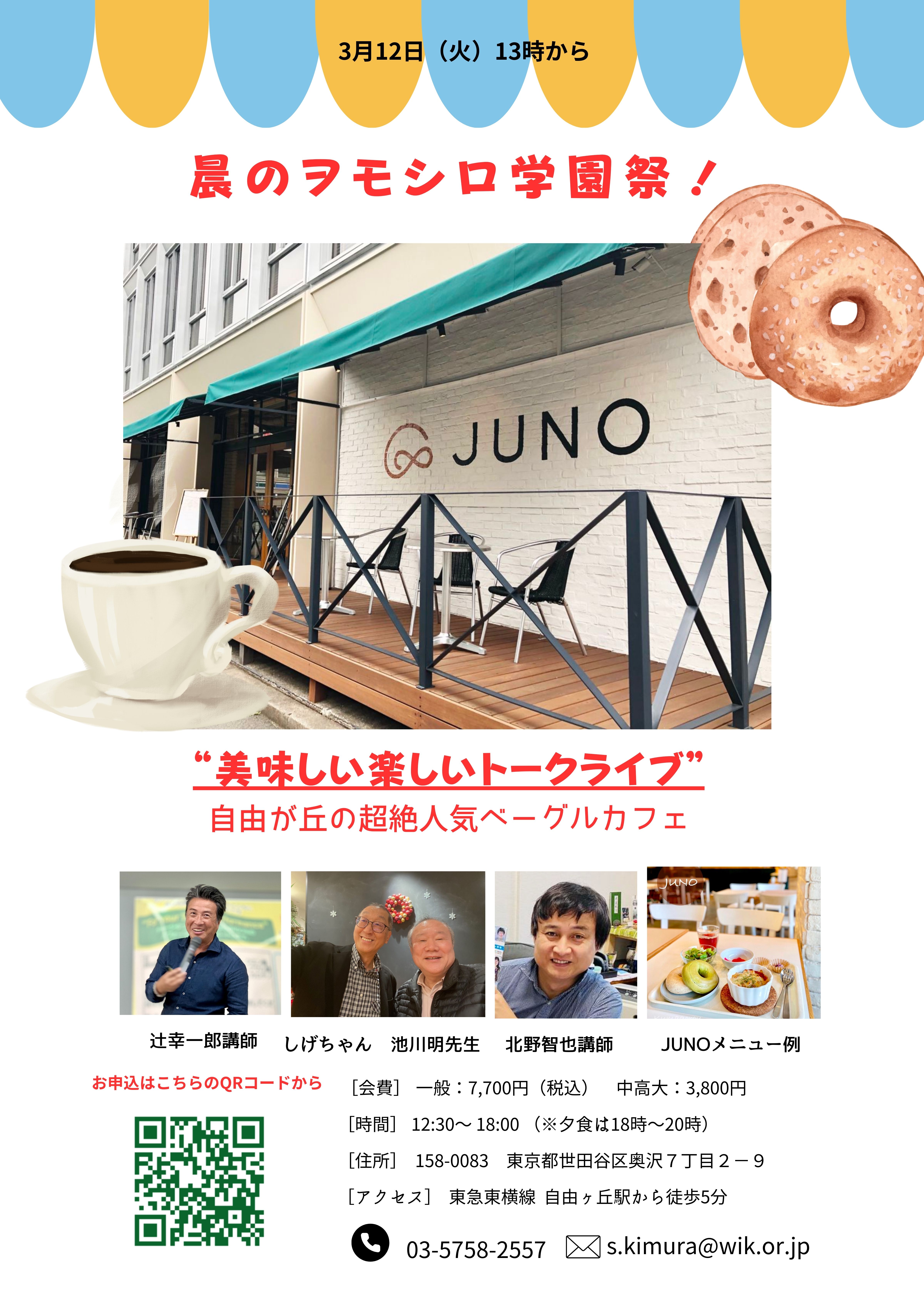 3月12日美味しい楽しい「晨のヲモシロ学園祭」in自由が丘 池川明先生VS辻幸一郎&北野智也さん出演