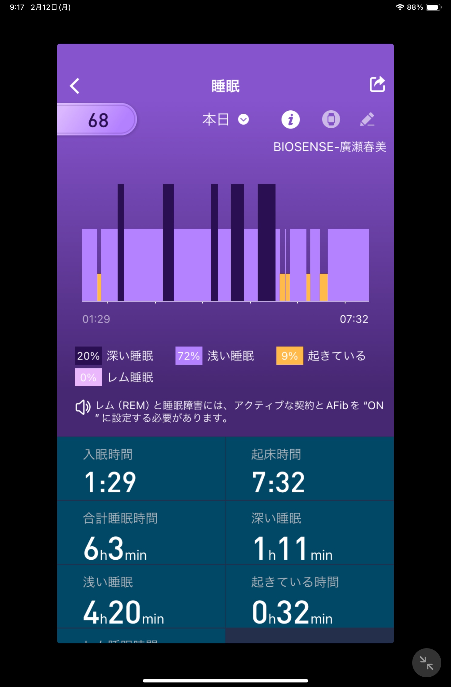 ちなみにアロマを使って寝た時の睡眠の質がこちら↓↓