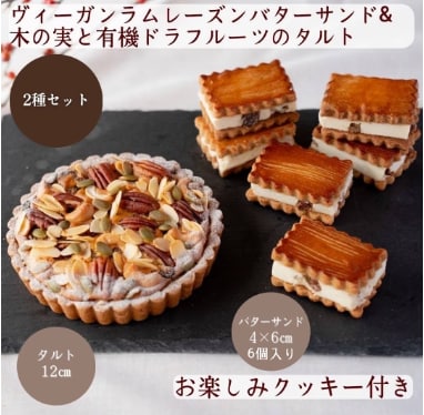 大人気ヴィーガンラムレーズンバターサンド&木の実と有機ドライフルーツのタルト販売中♪