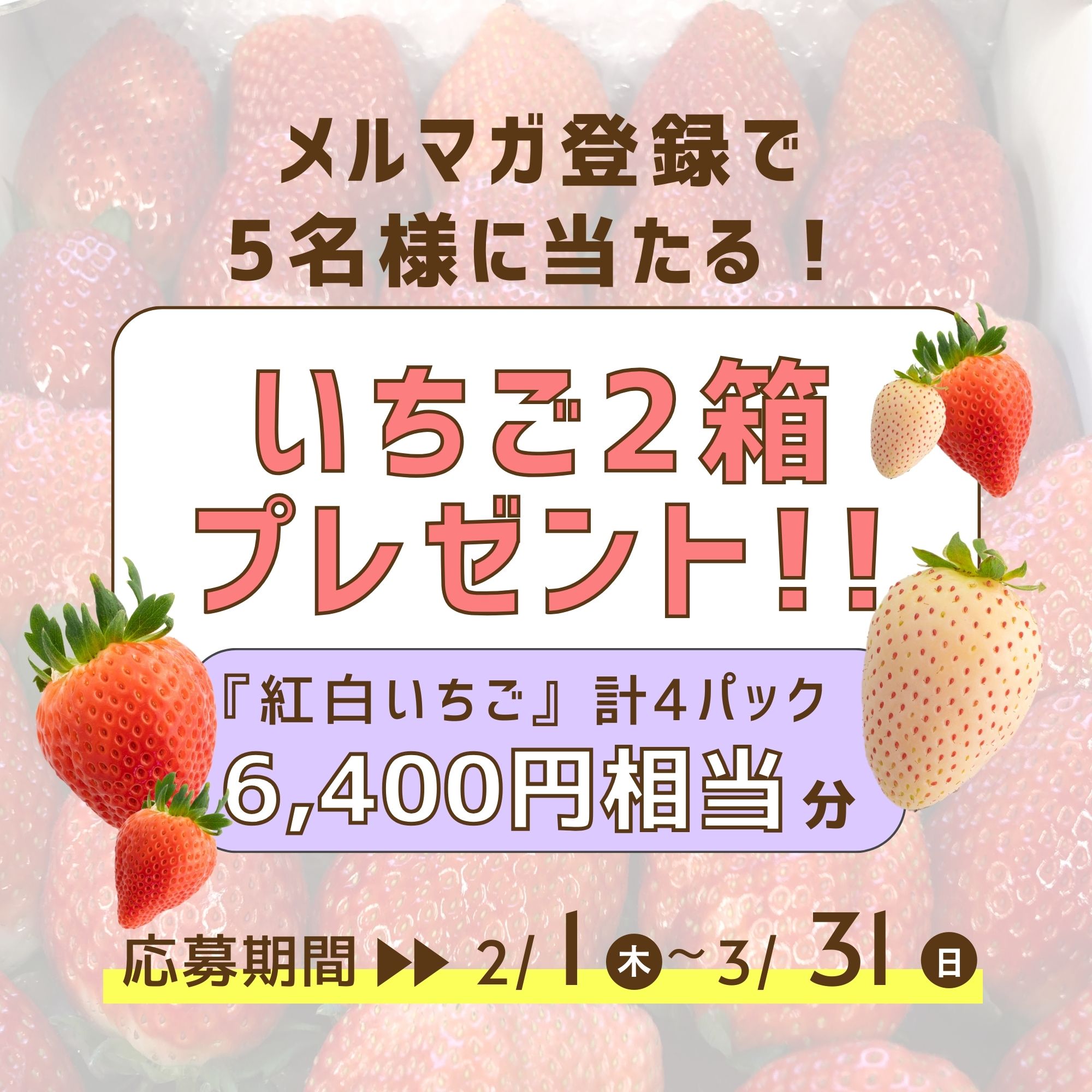 紅白いちご2箱(計4パック)が抽選であたっちゃいます✨
