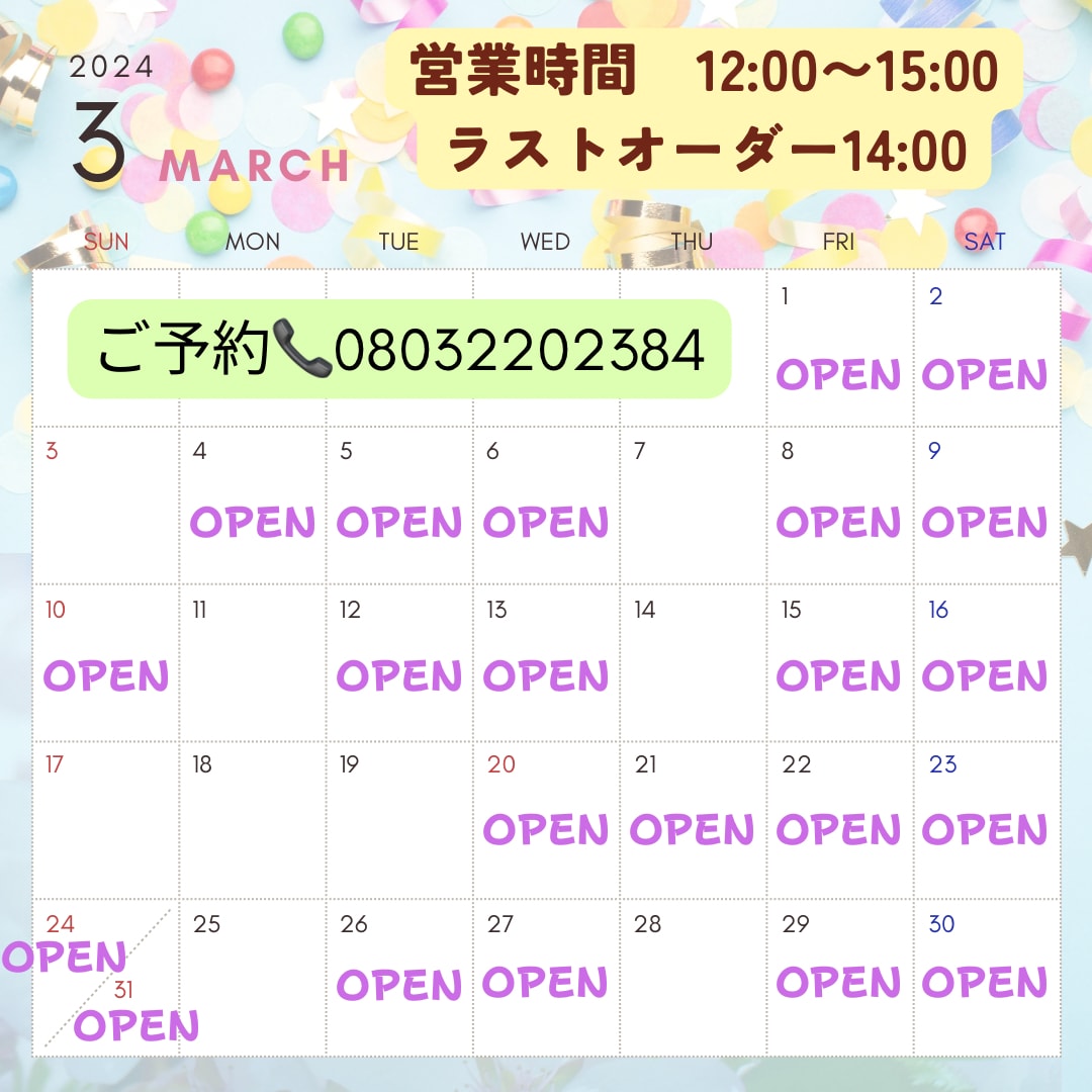 3月の営業日はこちらとなっております💡
