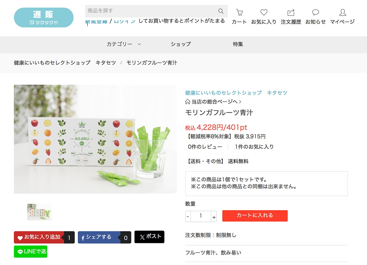 ▼アクセスしていただくと、ツクツク通販ページが開きます。