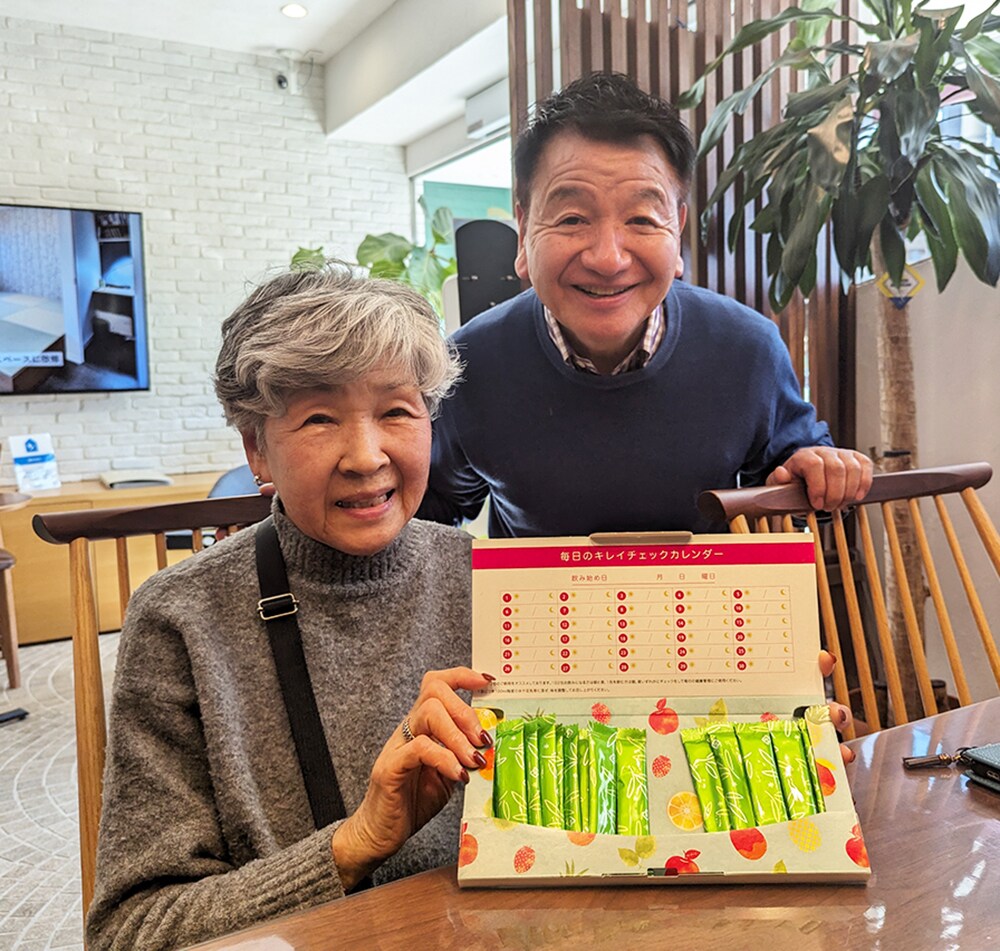 パソコンは使えてもスマホがなかなか使いこなせないんです。なので月に一度キタセツで社長にスマホを教わりながら、キタセツのショッピングサイトからモリンガ青汁を購入しています。