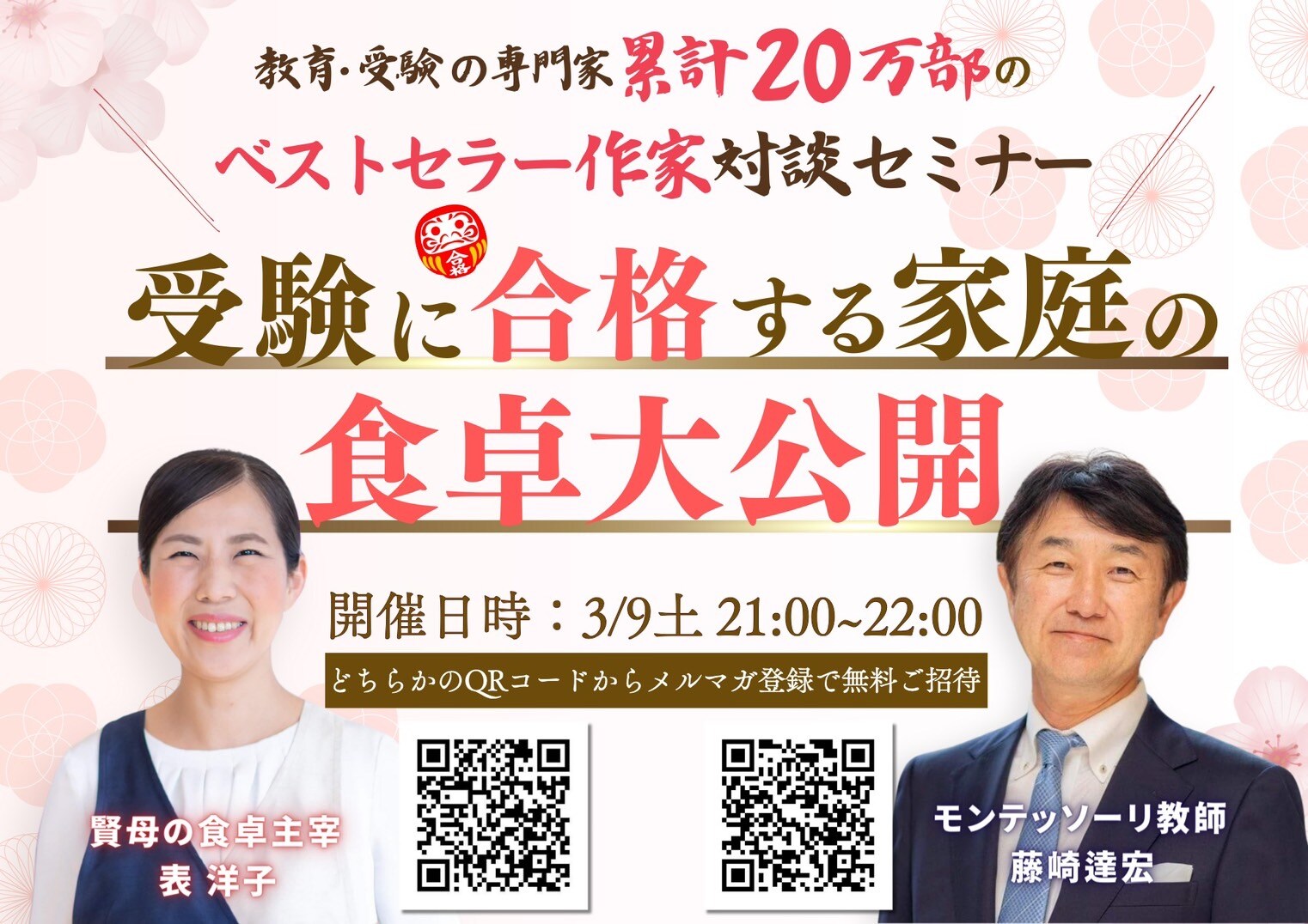 賢母の食卓・受験食事マイスターの「表 洋子先生」をお迎えして出版記念対談をいたします。