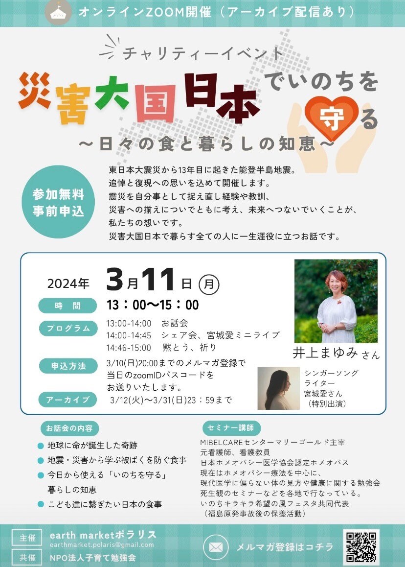 3月11日【井上まゆみ先生】チャリティイベントのご案内!