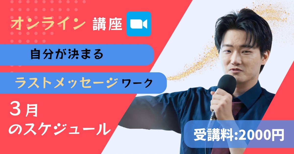 現在多くの方にご受講いただき、好評を受けております古市和樹のラストメッセージワークの3月の日程です。