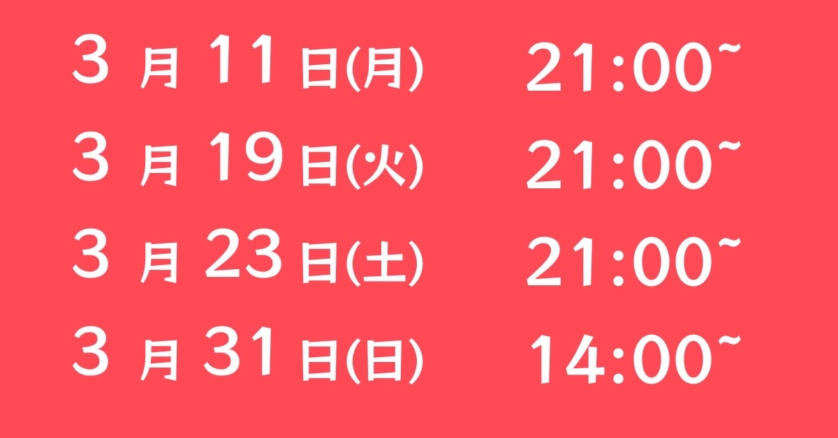 この後の日程は19日21:00〜、23日21:00〜、31日14:00〜の3回です。