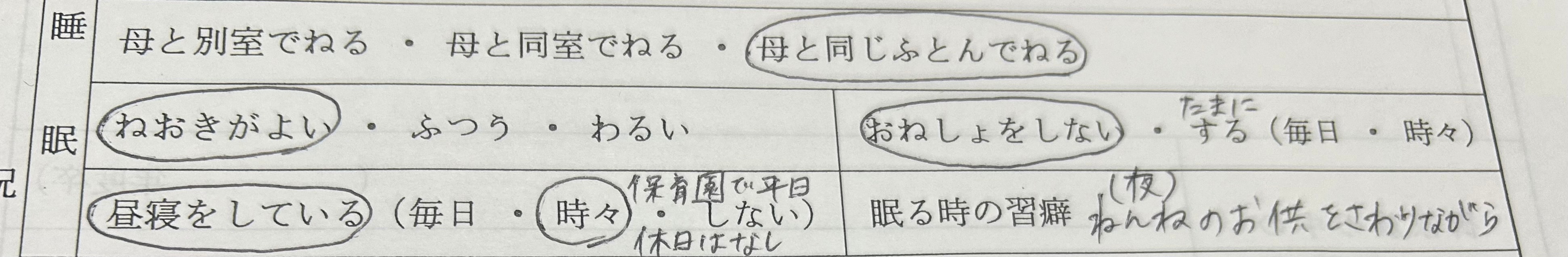 幼稚園入園の調査票で