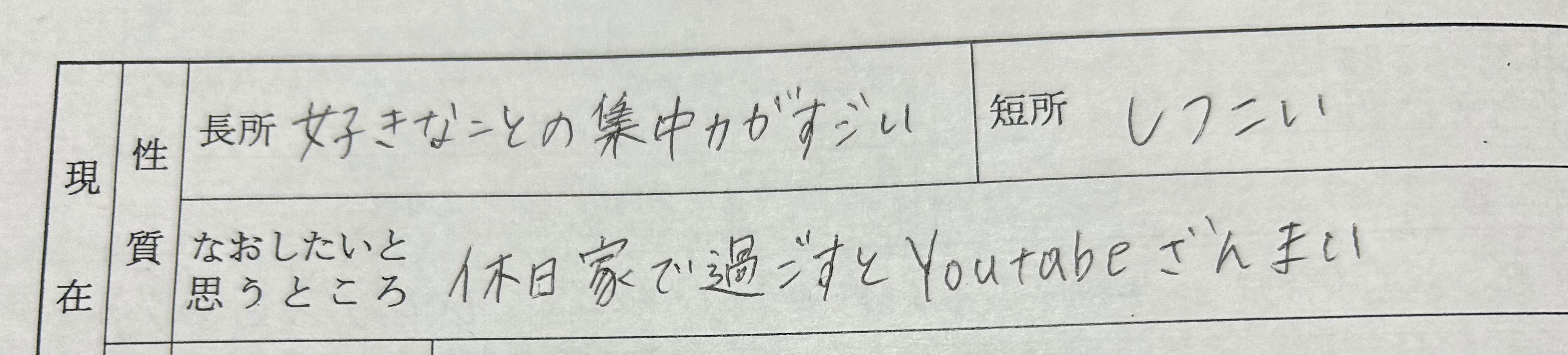 長所:好きなことにの集中力がすごい