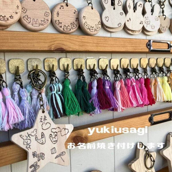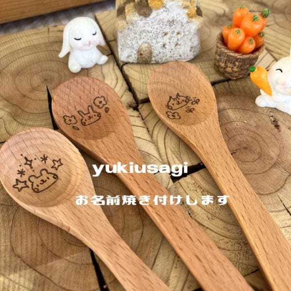 木製カトラリー、ランチプレート、キーホルダーなどにお名前を焼き付けします。
