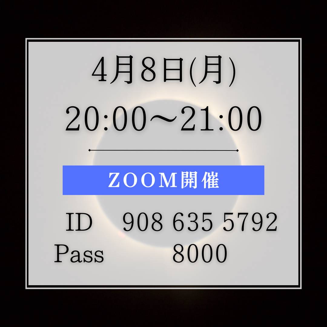 3月、4月は「蝕の季節」次回は9月になりますので、今回も参加してくれると嬉しいです!新月は皆既日食とも重なり、人生の流れを変えるスタートへ。
