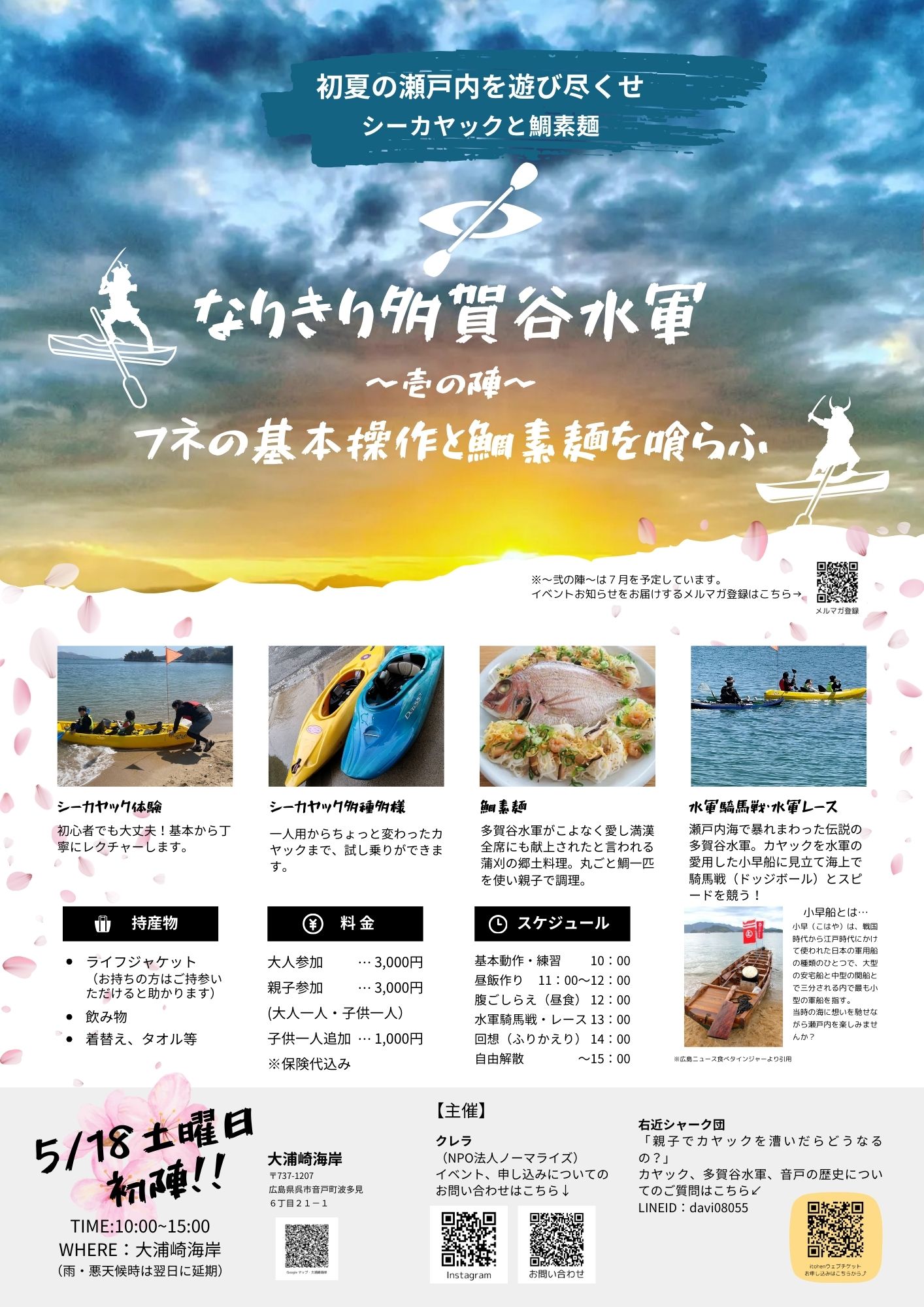 カヤック、多賀谷水軍、音戸の歴史についてのご質問は右近まで。