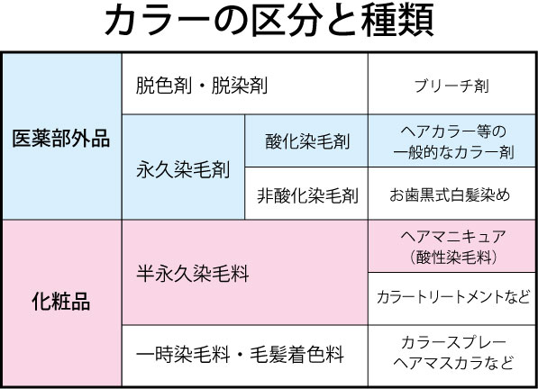 この表の中で一般的なカラーが「酸化染毛剤」