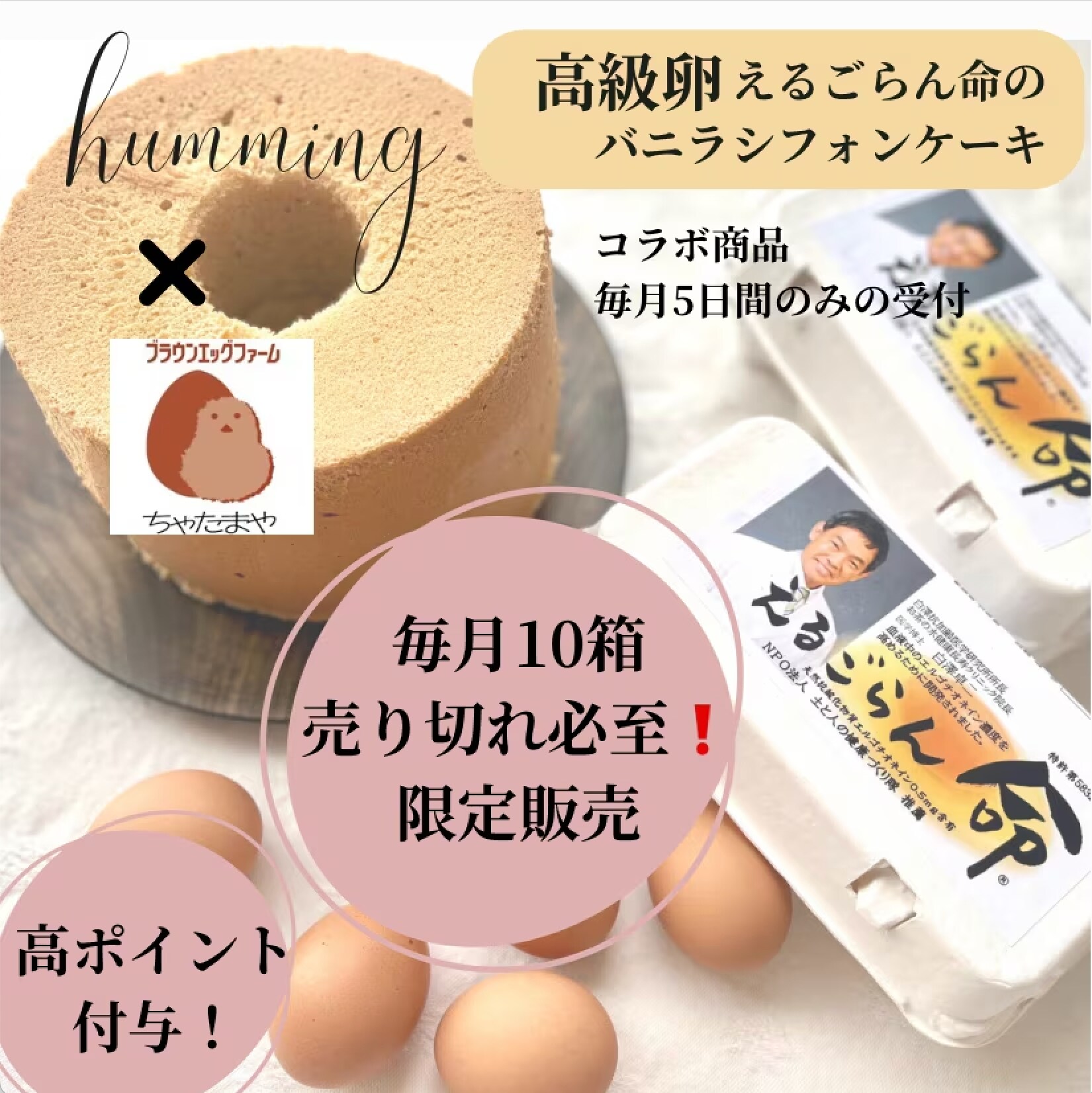 ・高級卵‼︎えるごらん命のバニラシフォンケーキ(個包装)高ポイント付与!!!【今月は12日までの限定販売】