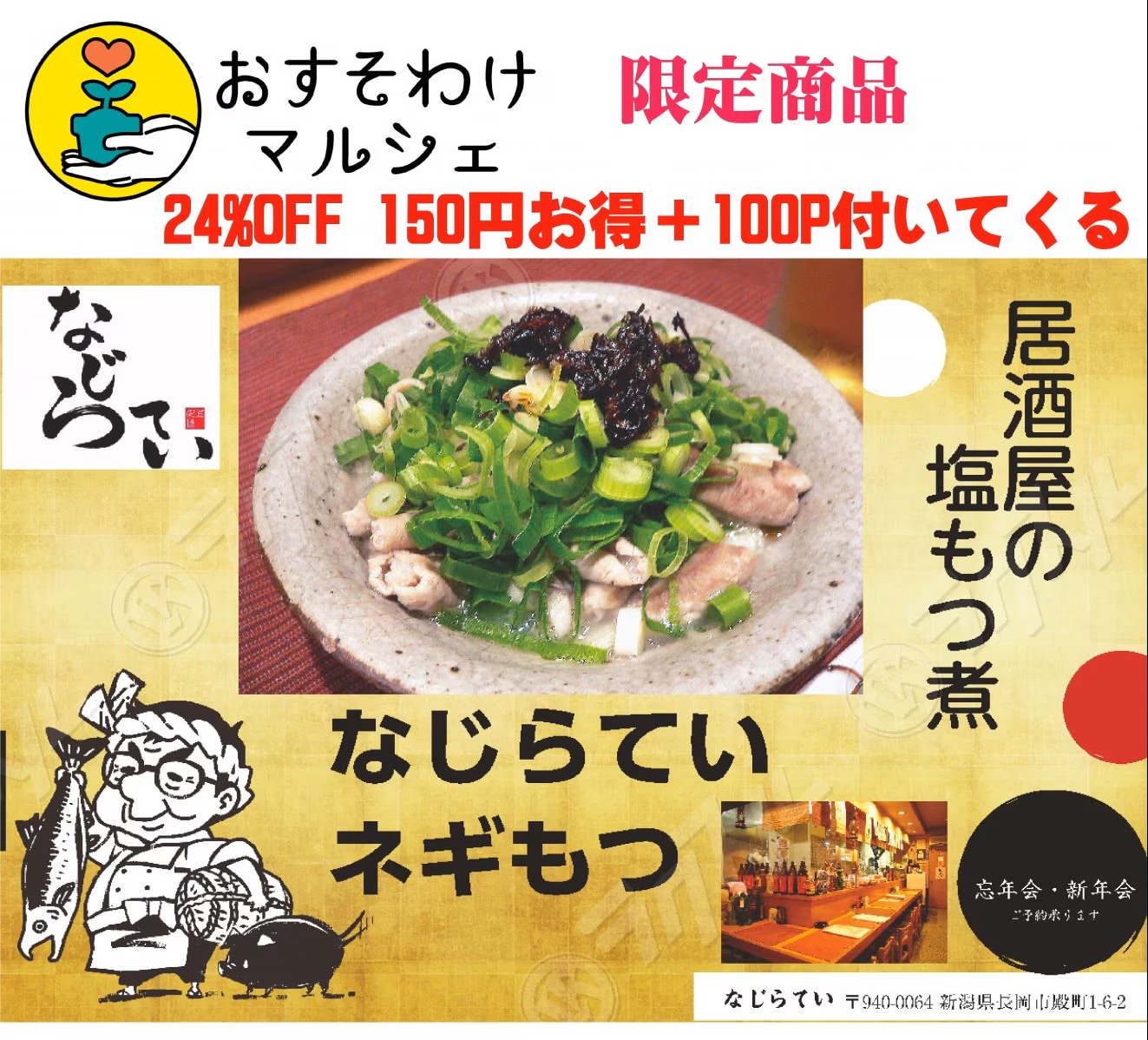 長岡市の居酒屋「なじらてい」の“ねぎもつ”はいかがでしょうか❓白湯スープで煮込んだ塩味のもつ煮込みは生ビールのお供にピッタリですね🤩