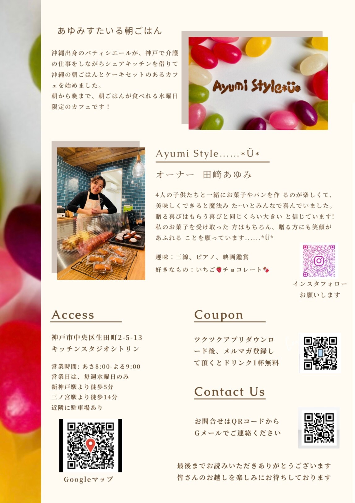 4人招待したらAyumi Style……*Ü*のニコニコセット(店頭払い限定商品)が無料になっちゃうから、お友達と一緒に焼きたてカフェにもお越しくださいね。