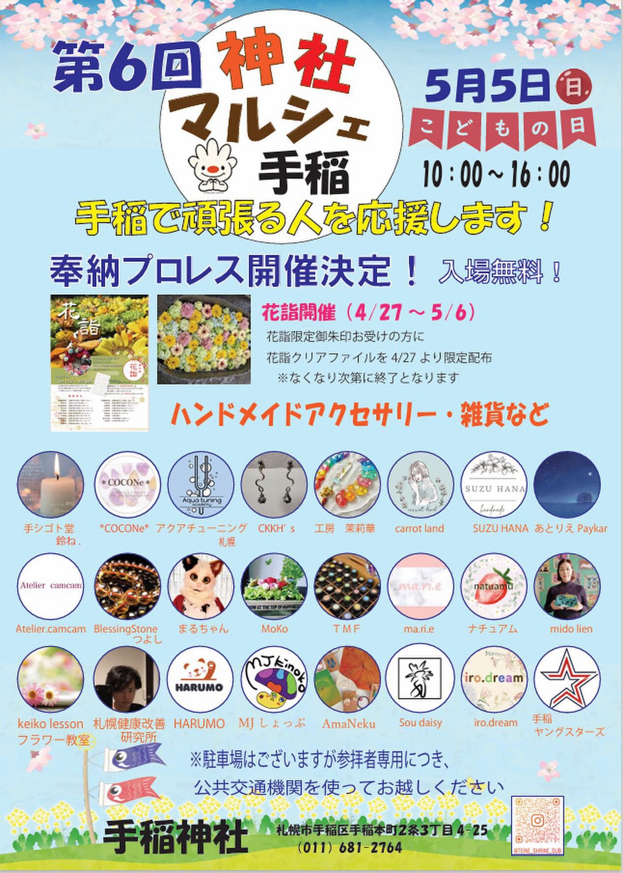 手稲駅からも徒歩圏内、4/27〜5/6までは花詣も開催されます🌸