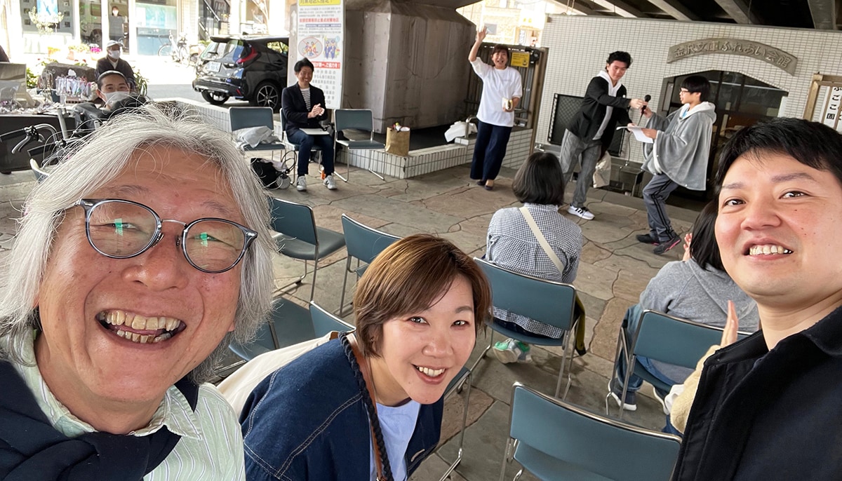 ▲右から純平ちゃん、まんまる音楽劇主催の穴沢さん、スットコ大ちゃん