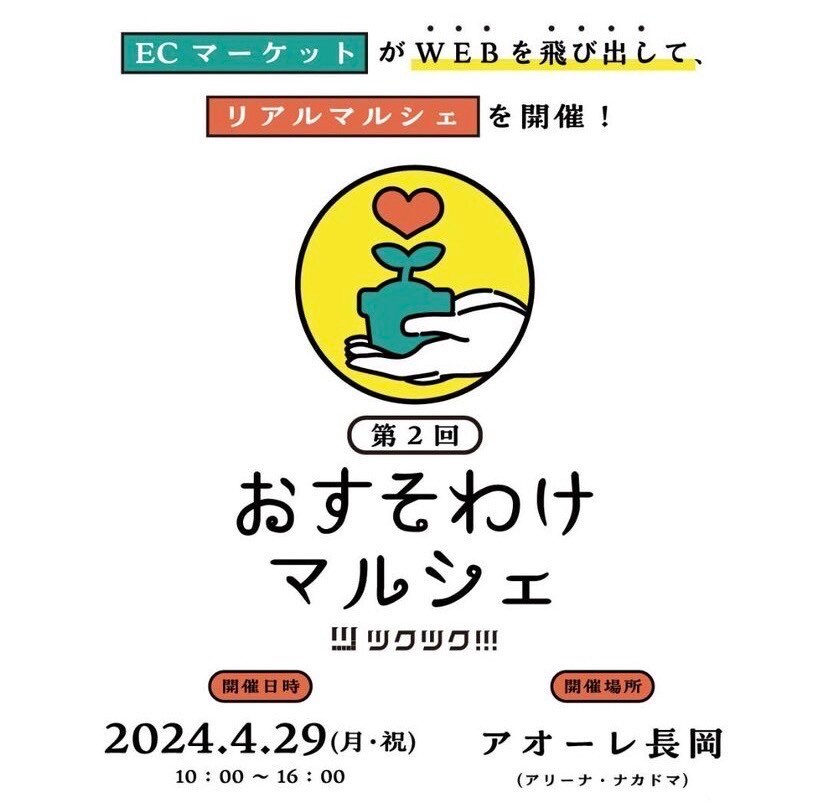 そして来たる4月29日は…。アオーレ長岡にて開催される、おすそわけマルシェに参加出店いたします。