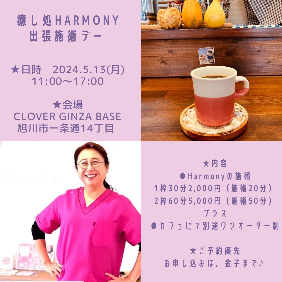 月イチのカフェ出張施術DAYは、5月13日月曜日。