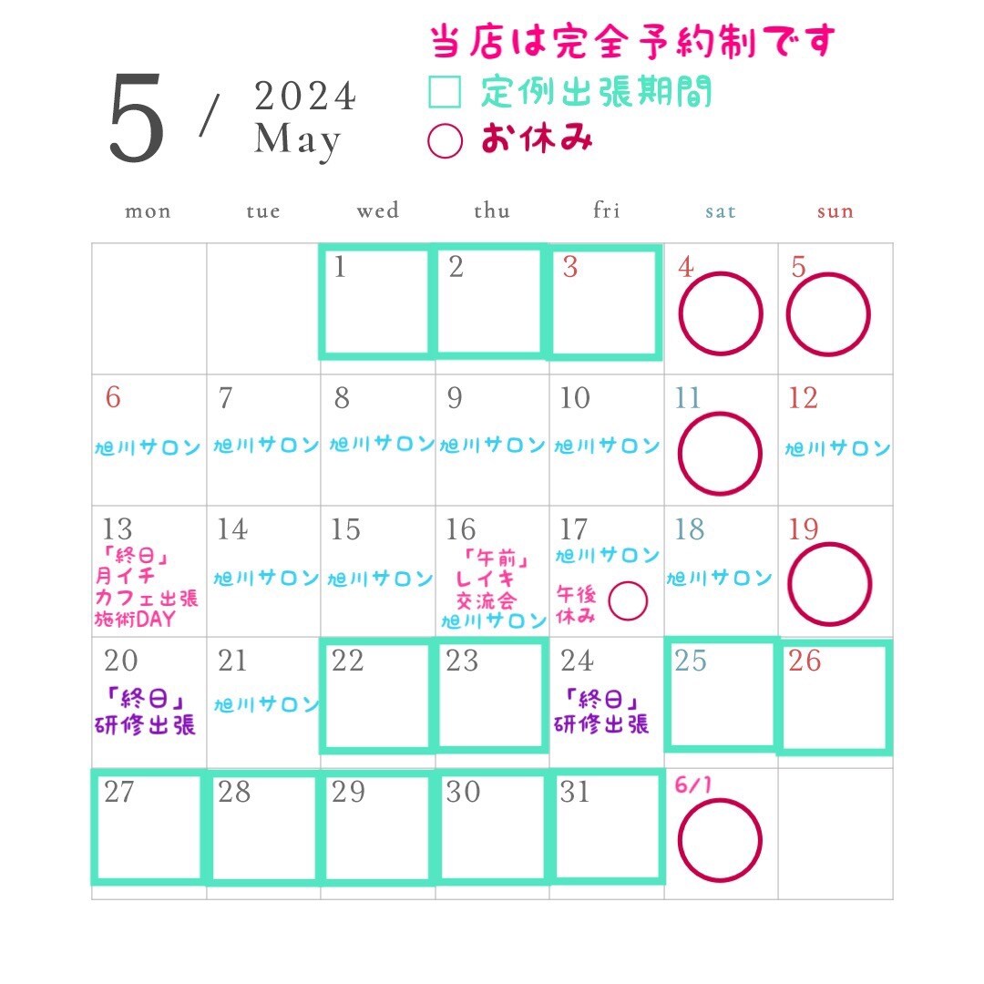 5月は旭川サロンでの予約枠が埋まりつつあります。