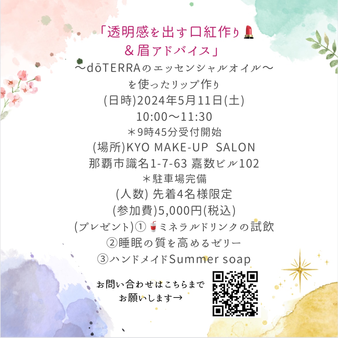 5月11日(土)10時から4名様限定のイベントをメイクサロン💄で開催します。