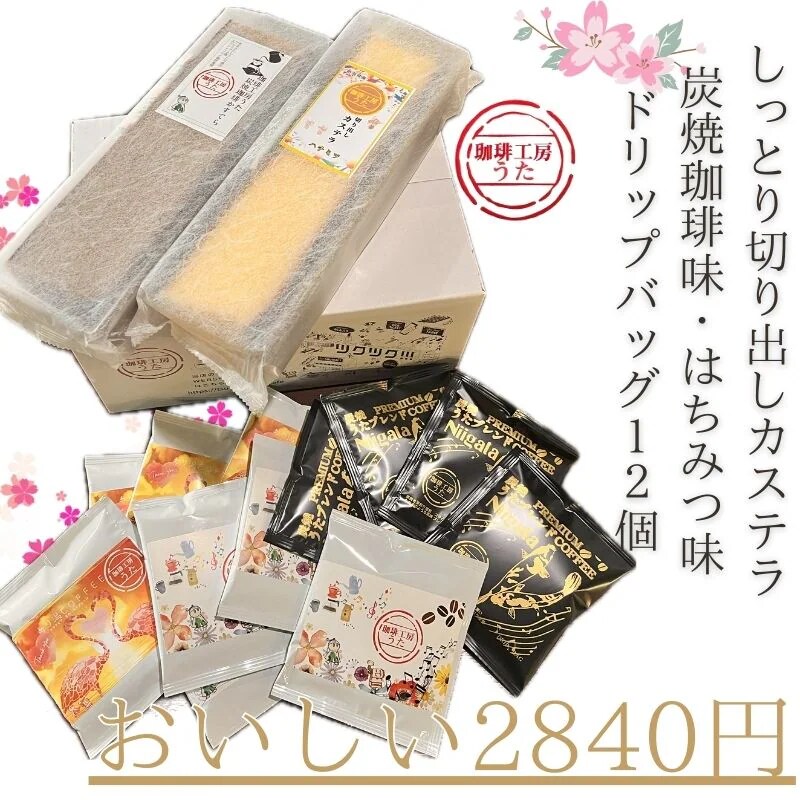 【珈琲工房うたの名物詰合せ】炭焼珈琲かすてらとハチミツカステラ ドリップバッグ12個セット