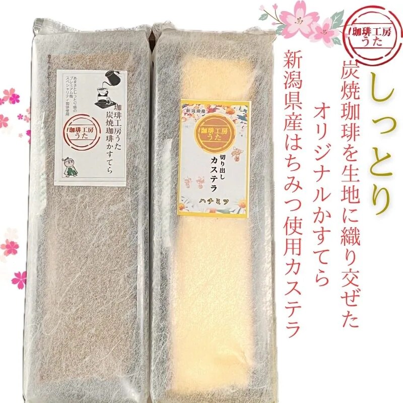 そして‼️大人気の切り出しカステラにこだわりのスペシャリティ珈琲を使用して作った炭焼珈琲かすてらとハチミツ味がセットとなっております😋