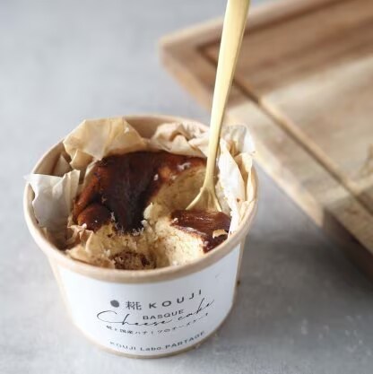 コウジラボパタジェさんのバスクチーズケーキは、こだわり糀はもちろんの事、地元神戸にある須磨離宮公園のハチミツを使用したチーズケーキ🧀