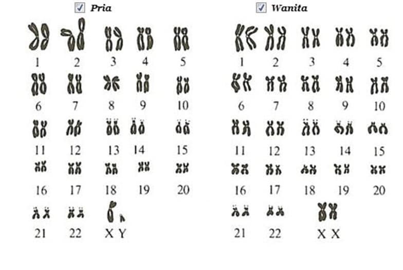 男性の染色体は、“XX”が22組、“XY”が1組と