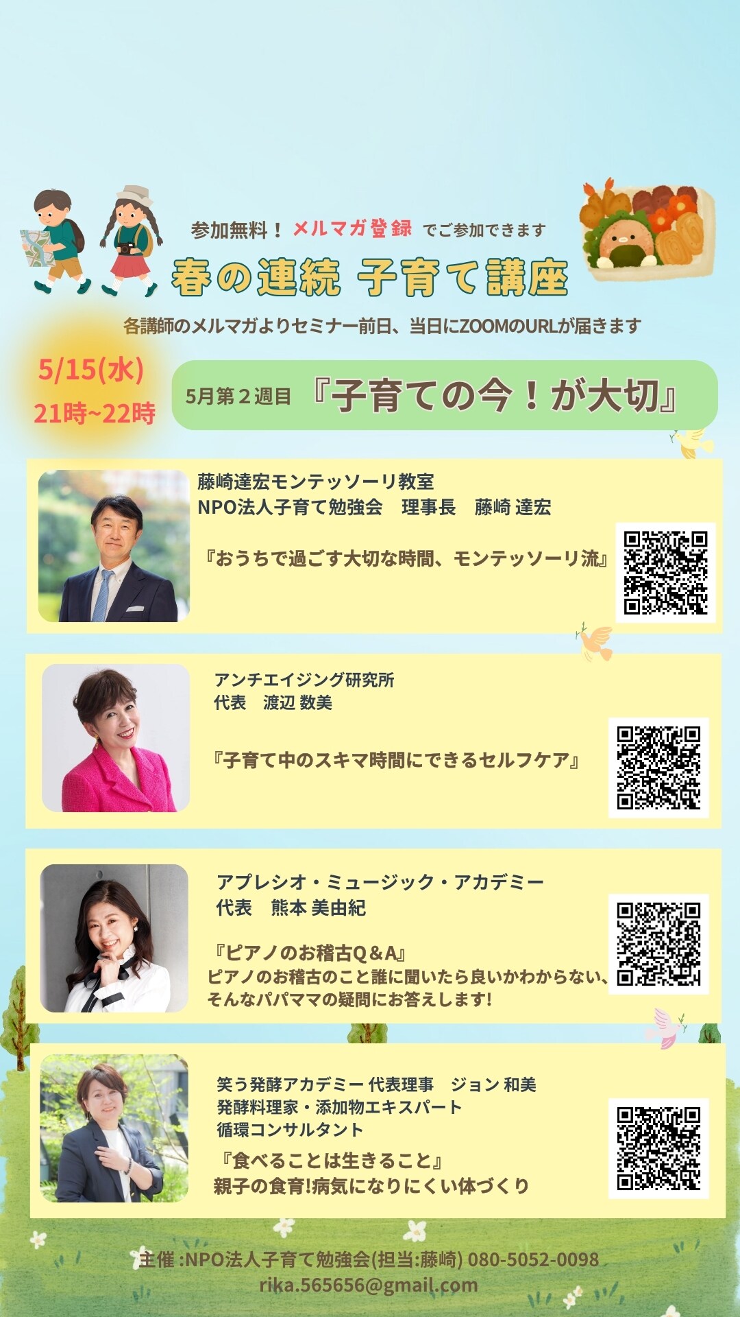 本日も新しい先生方4人に様々お話いただきます。子供が家にいると大変!ではなくて楽しくなります。よ