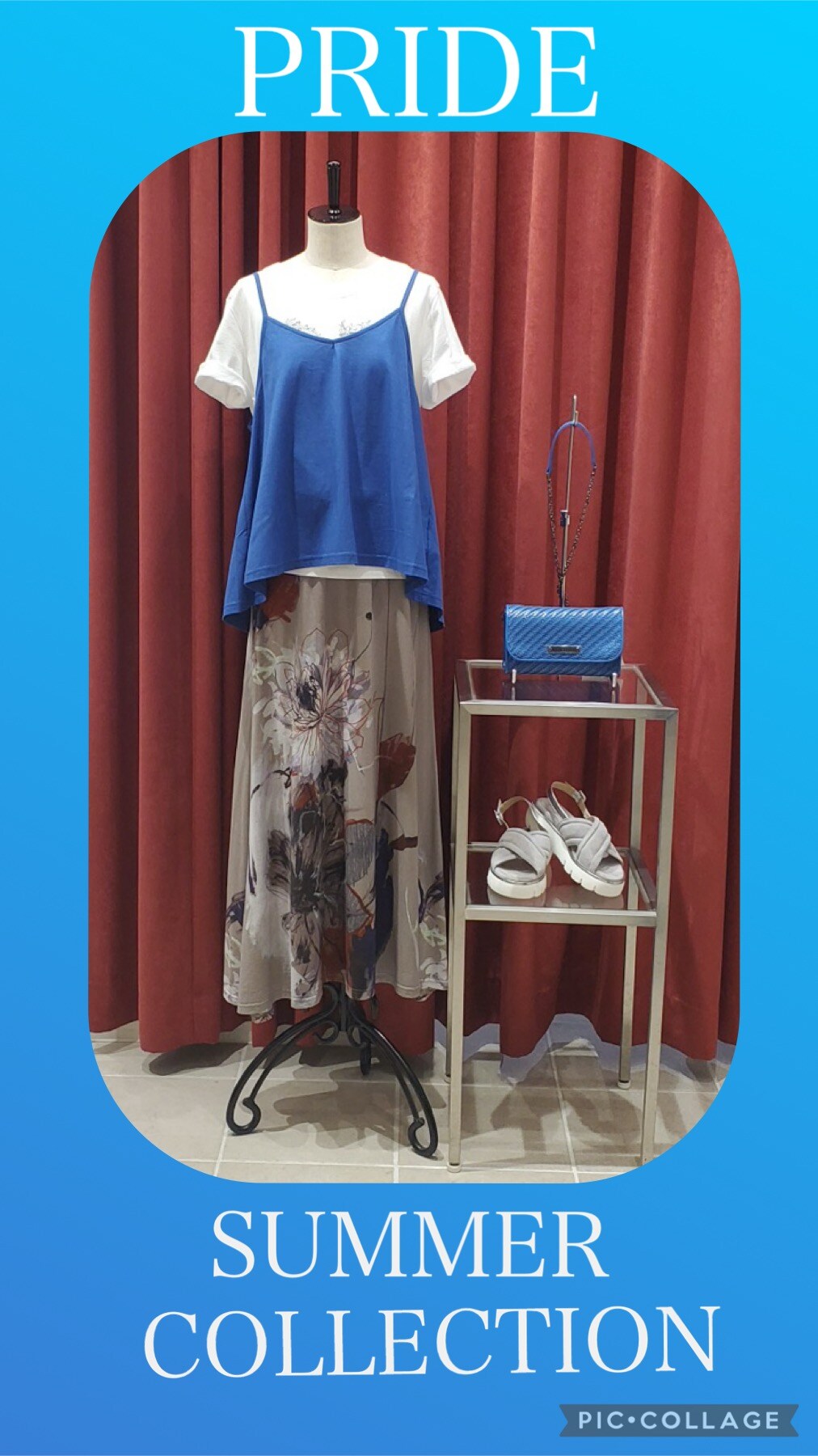♡PRIDE新作紹介✨大胆なお花の柄も色使いがシックなのでデイリー使いに😊トップスや足元をカジュアルに仕上げて大人なカジュアルコーディネート💕