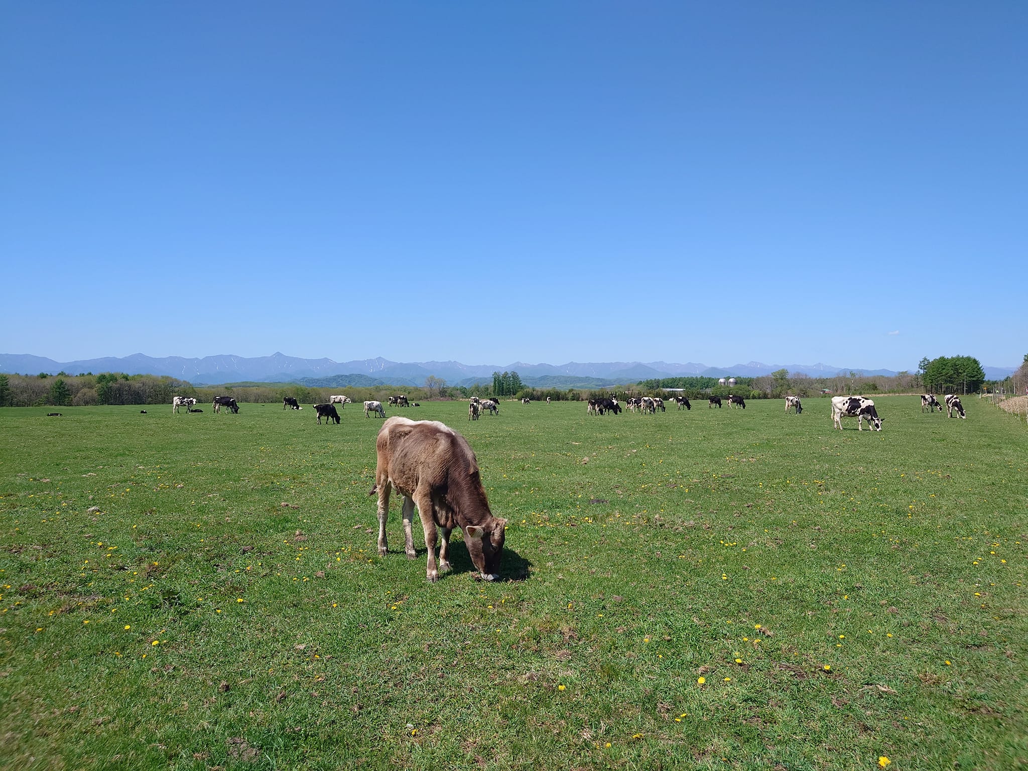 その中に牛が自由に歩き回り、青草を食む光景はなんとも気持ちいいものです。