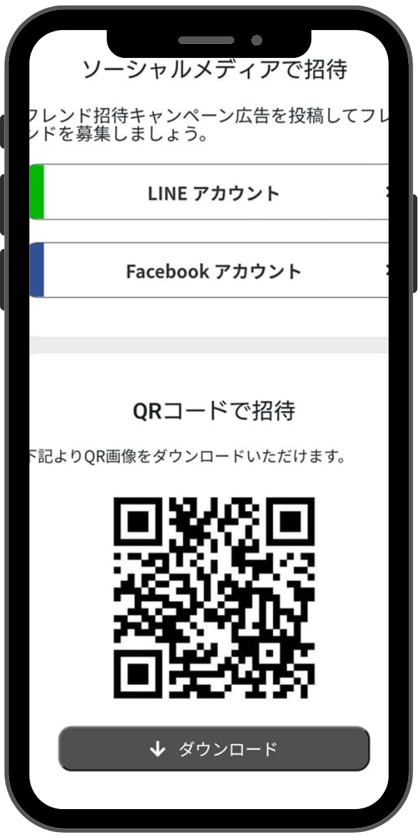 ③ 『あなた専用の招待URL』をお友達に送る ※LINE、FB、Twitterでも招待可能
