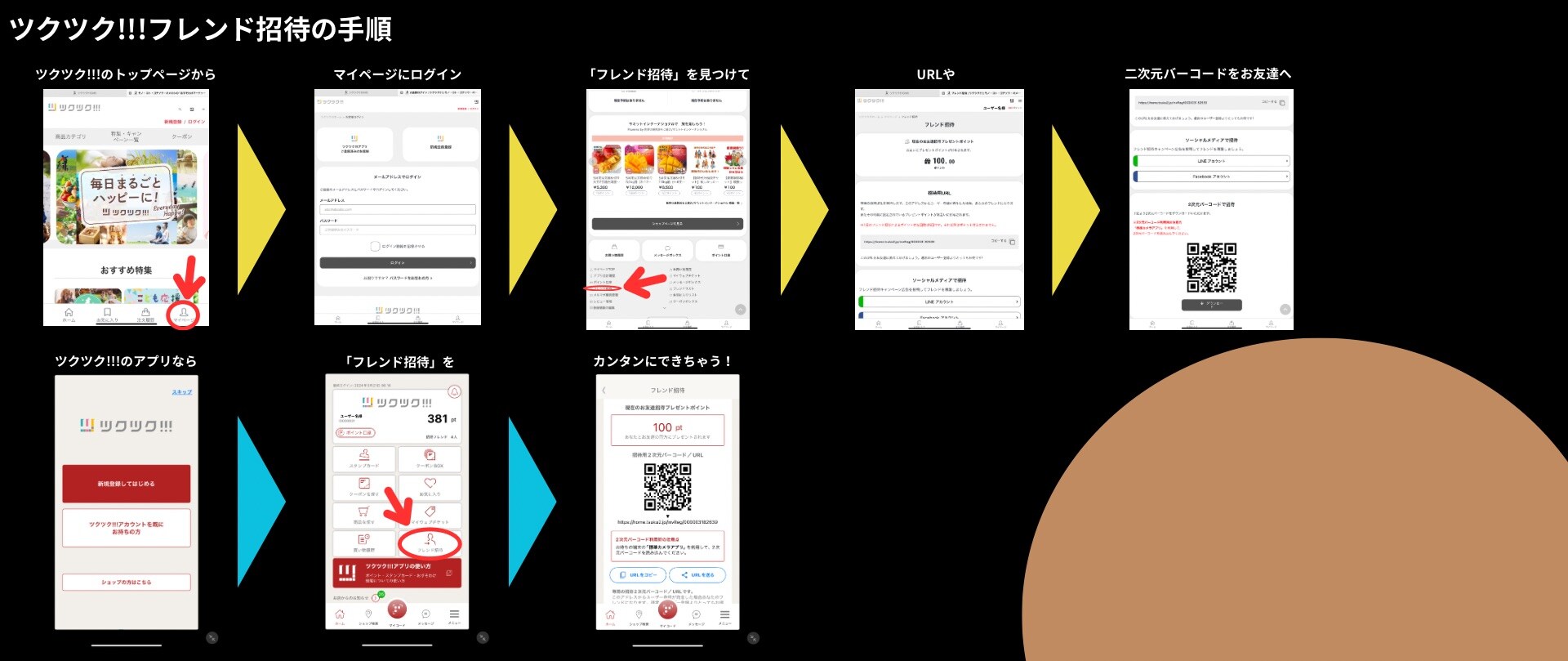 教えてあげた方がもしツクツク!!!を初めて利用される方だったら、ツクツク!!!のマイページからフレンド招待をしてさしあげてください。なんと、あなたとその方どちらにも1ポイント=1円で使えるツクツク!!!ポイントが100ポイントプレゼントされます♪
